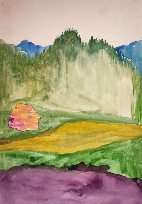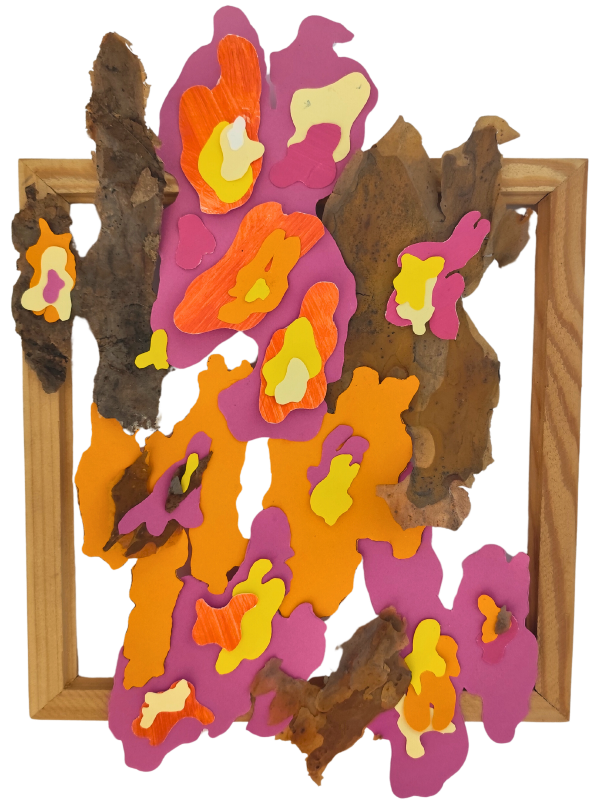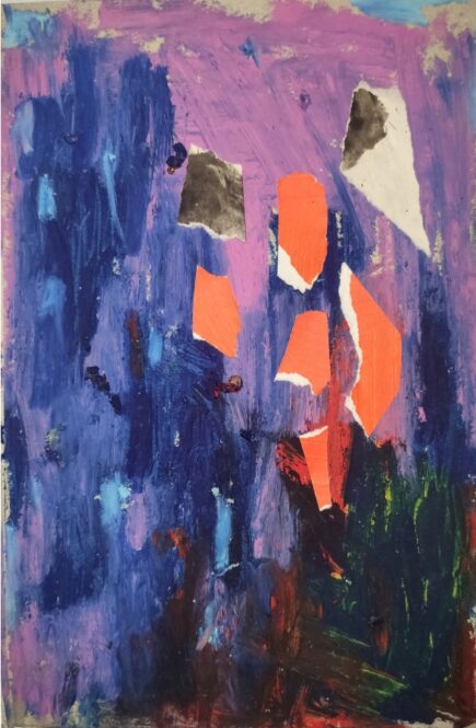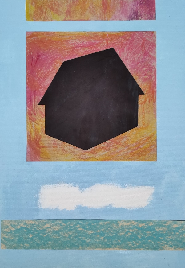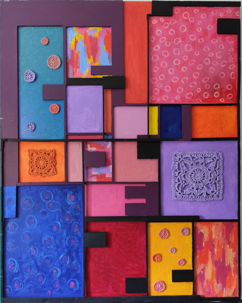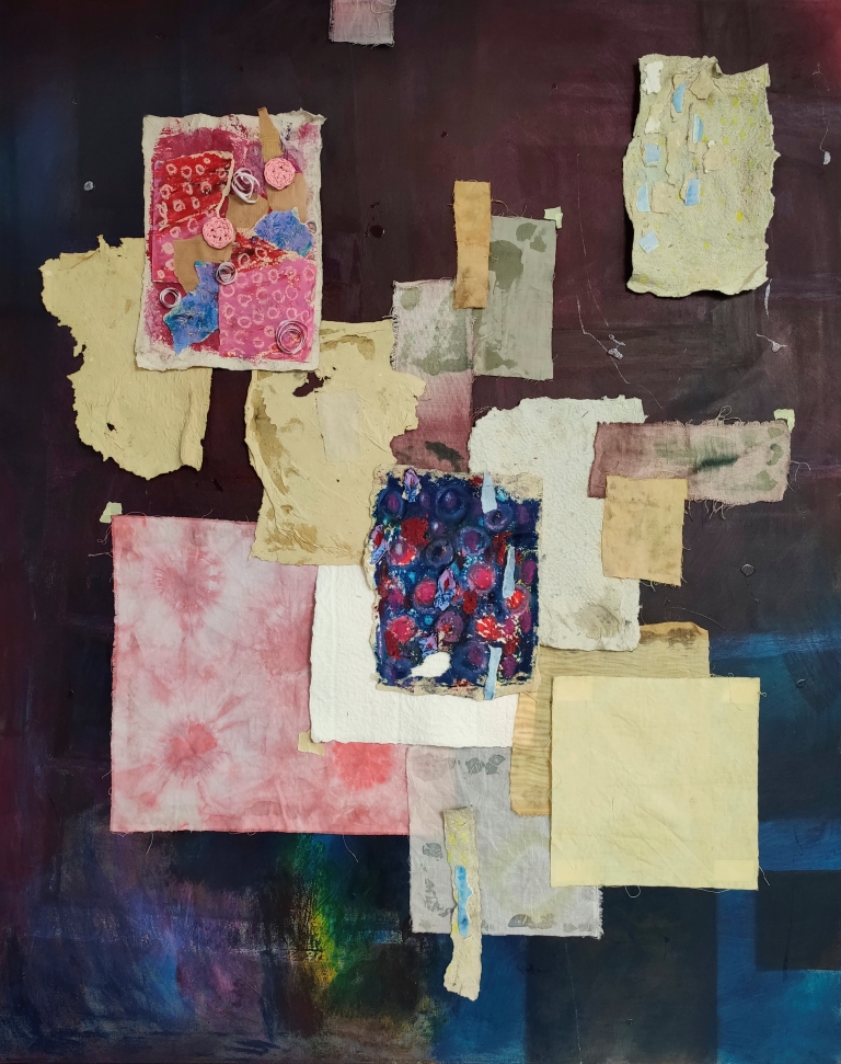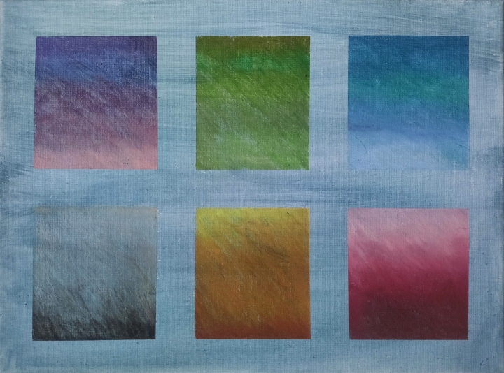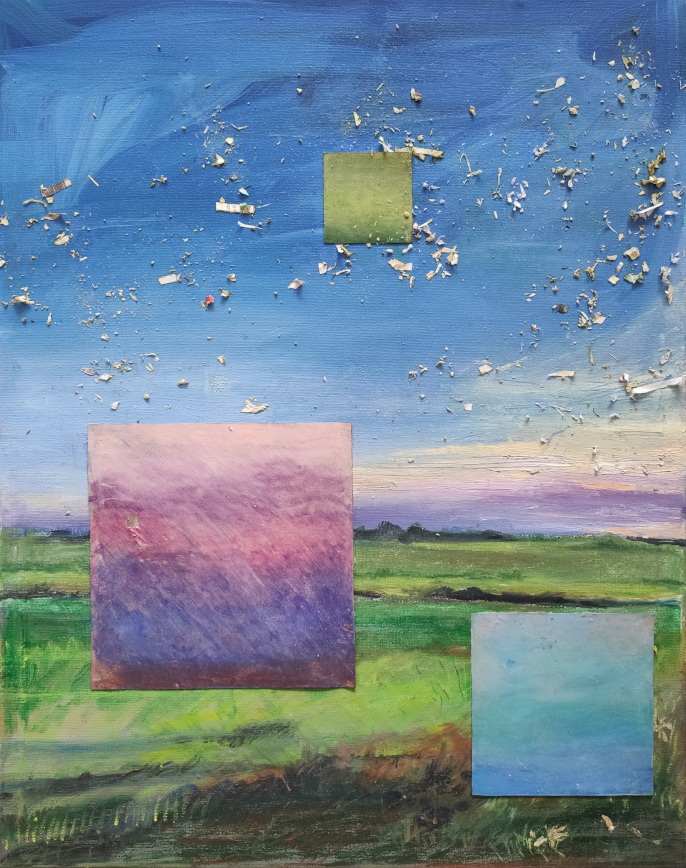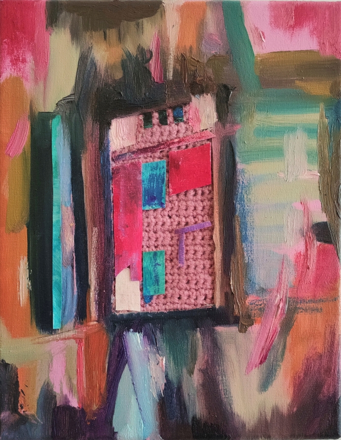 farby olejne, włóczka, papier, pastele olejne na płótnie,
